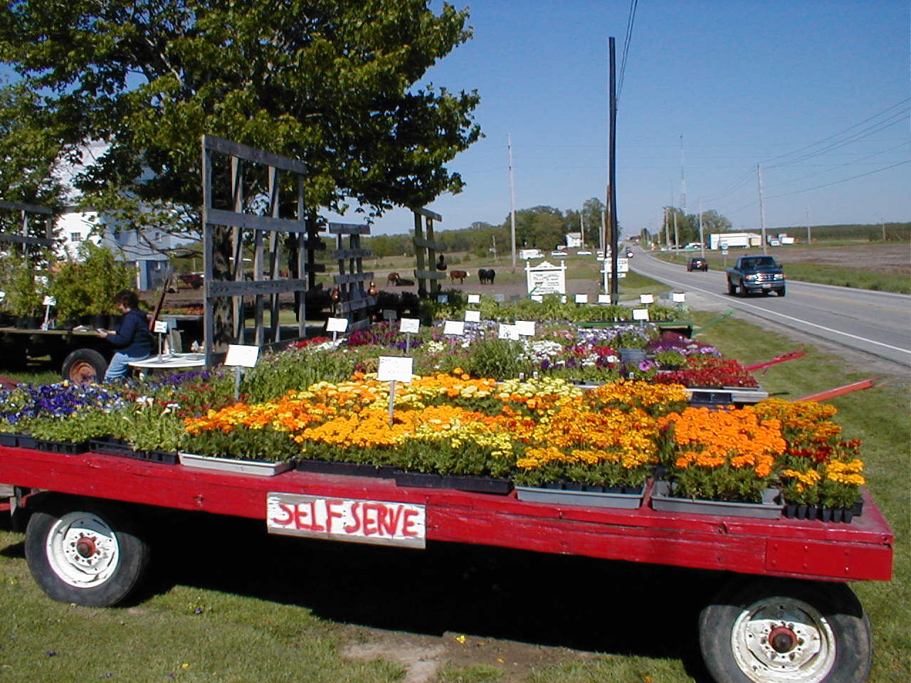 | MY BROTHER PUT OUT THE FIRST FLOWERS OF THE YEAR TO SELL. THEY WERE ALL HAND PLANTED FROM SEED IN HIS GREEN HOUSE! |