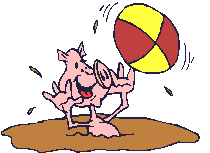 | Ah yes, another pig story has come to mind! Tim and I not only teased the grown pigs, but we also had fun with the little pigs as well. Ollie, our grandmother, always told us, "Waste not want not", so we got maximum mileage out of all the pigs, both large and small. It was so good that on rare occassions we actually heeded the advice of "grown ups" :-) However, I'm sure if they had known about 99.993% of our antics, they would have been horrified! In this account I will relate another one of our countless original ways to tease, provoke, and generally aggravate the pigs. Tim and I would herd all the little pigs (around 20 or so as best as I can recollect, into the "box stall". Then Tim or myself, whoseever turn it was, would lay down across the door way and the other would yell, "Stampede"!, and chase all the pigs out and they would run over us going through the box stall doorway! It was really fun to have a herd of little pigs run over you, at least it was to us. At least we had the sense not to do this with adult pigs, or we would have had many scars shaped like pig feet all over us. Whenever Uncle Ned caught us aggravating the pigs, we would yell, "Quit running the fat off the pigs"! Hey, we figured we were just doing them a favor and making their boring life more interesting and challenging. It's a proven fact that pigs are among the most intelligent animals, so they must have figured that all the "excercise" we gave them were for their own "good"! After all, even pigs are entitled to some "fun and recreation", and we figured it was up to us to provide it for them. We sure provided a lot of it too! Hey, we were just that kind of "thoughful" kids! |